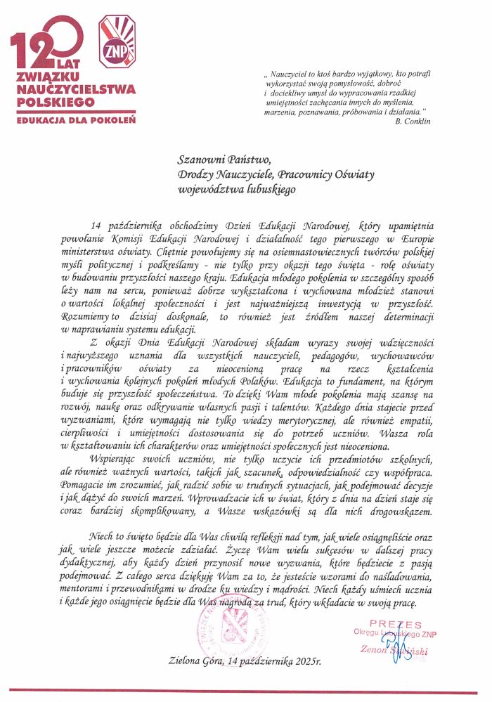 Dzień Edukacji Narodowej i 120- lecie ZNP w Witnicy